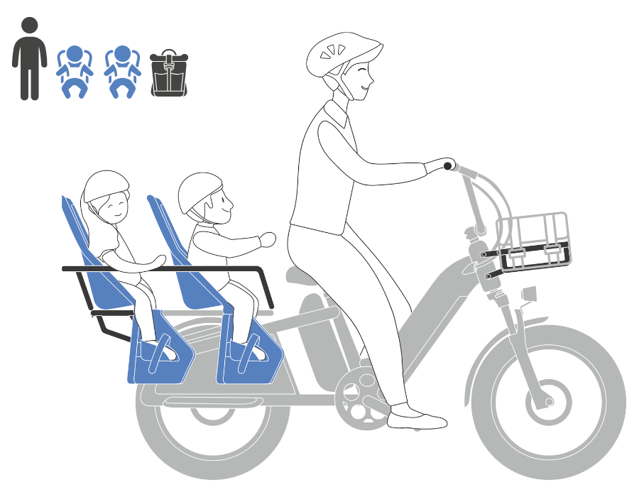 Designed to accommodate a variety of cargo accessories, including baskets, bags, child seats, and delivery racks.