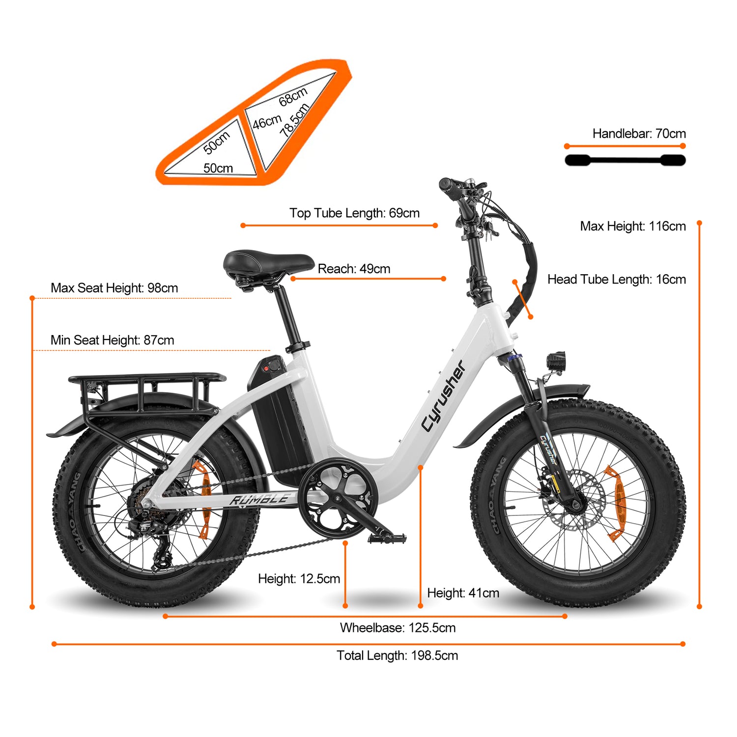 It is combining ease of use, power, and speed. The Rumble step-through offers a flexible and durable ride with a top speed of 22 mph thanks to its dynamic 500W geared hub motor and detachable 48V 18AH battery. Robust 4" fat tires ensure smooth rolling on any terrain by offering outstanding traction and stability.