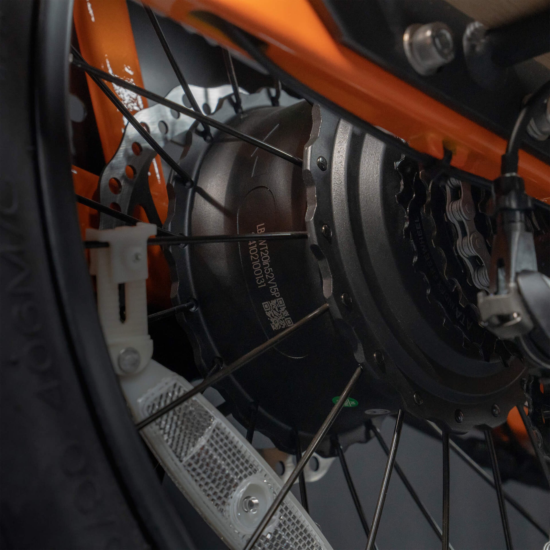 Ride through any surface with the chaoyang 20" * 4.0" tires and suspension. Rain or snow, fear not. The bike is IPX5 waterproof (some parts IPX7 waterproof).
