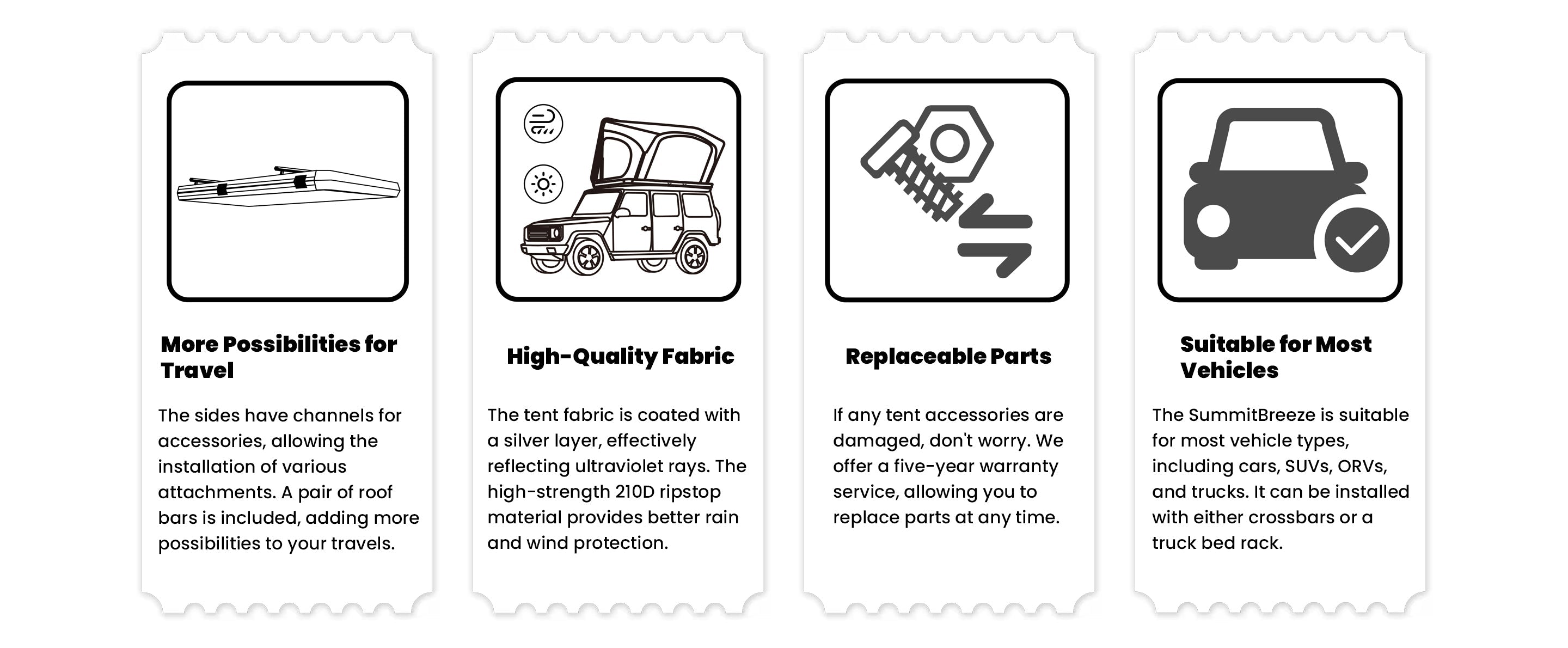 The sleek and aerodynamic design of the SummitBreeze rooftop tent allows for efficient airflow, reducing wind resistance and enhancing fuel efficiency during travel.